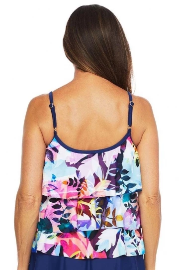 - Tiered detail provides a flattering look