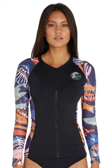 Babes In the Shade Mamiko Long Sleeve Zip Rashie Black/White