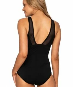 Poolproof Hibiscus DD/E Cup Wave Spliced One Piece Black/White