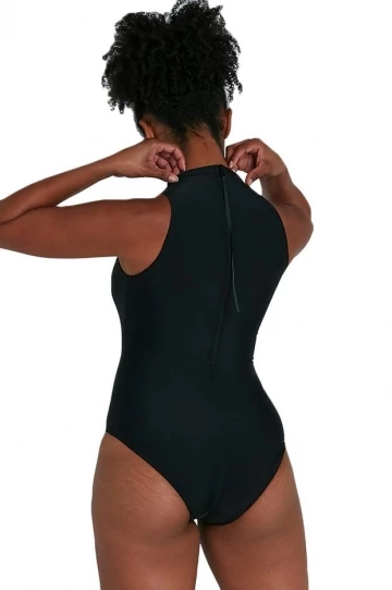 - High back with zipper closure